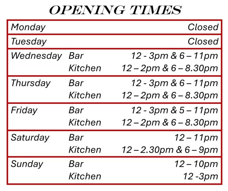 Our food is homemade everyday using the best fresh produce, our beef, lamb & pork is all sourced locally and butchered on site. All other food is sourced locally when possible